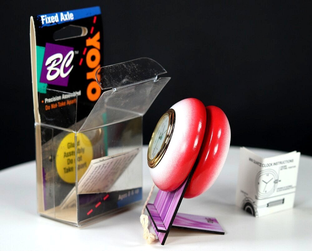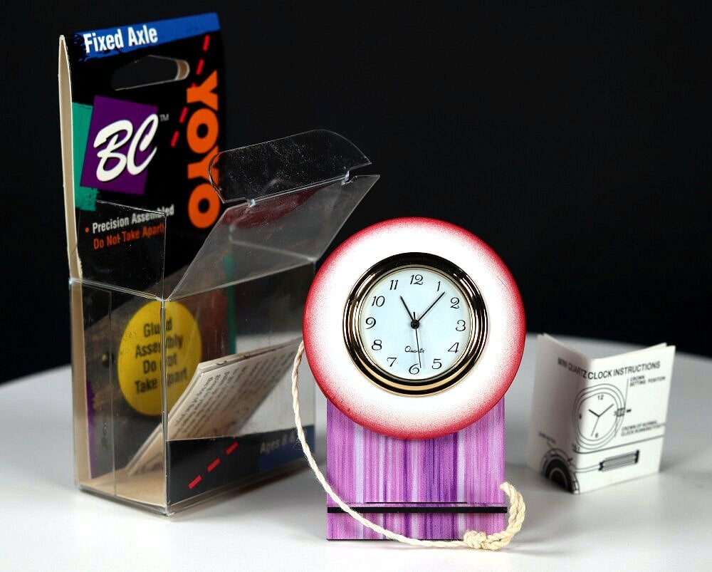 Note that this is intended to be a novelty desktop clock, and not a playable yo-yo. Clock setup instructions included.