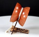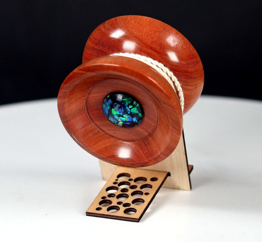 100% handmade and lathe turned from a single block of wood, with no glue holding the sides and axle together. Fixed axle, with "nickel" width (~2mm) string gap for responsive play. Perfectly balanced and a smooth player. Measures about 2.25" x 1.50" and weighs in at 66 grams (with string).