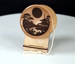 Moonrise over Japanese Garden scene, with Davidson LatheCraft maker's mark, laser engraved onto each side of the deep concave surfaces on this New England hard Maple.