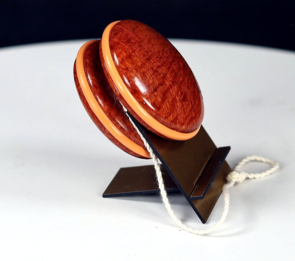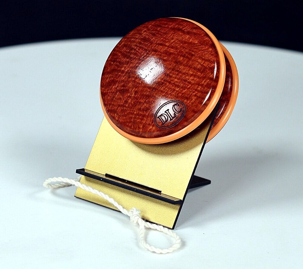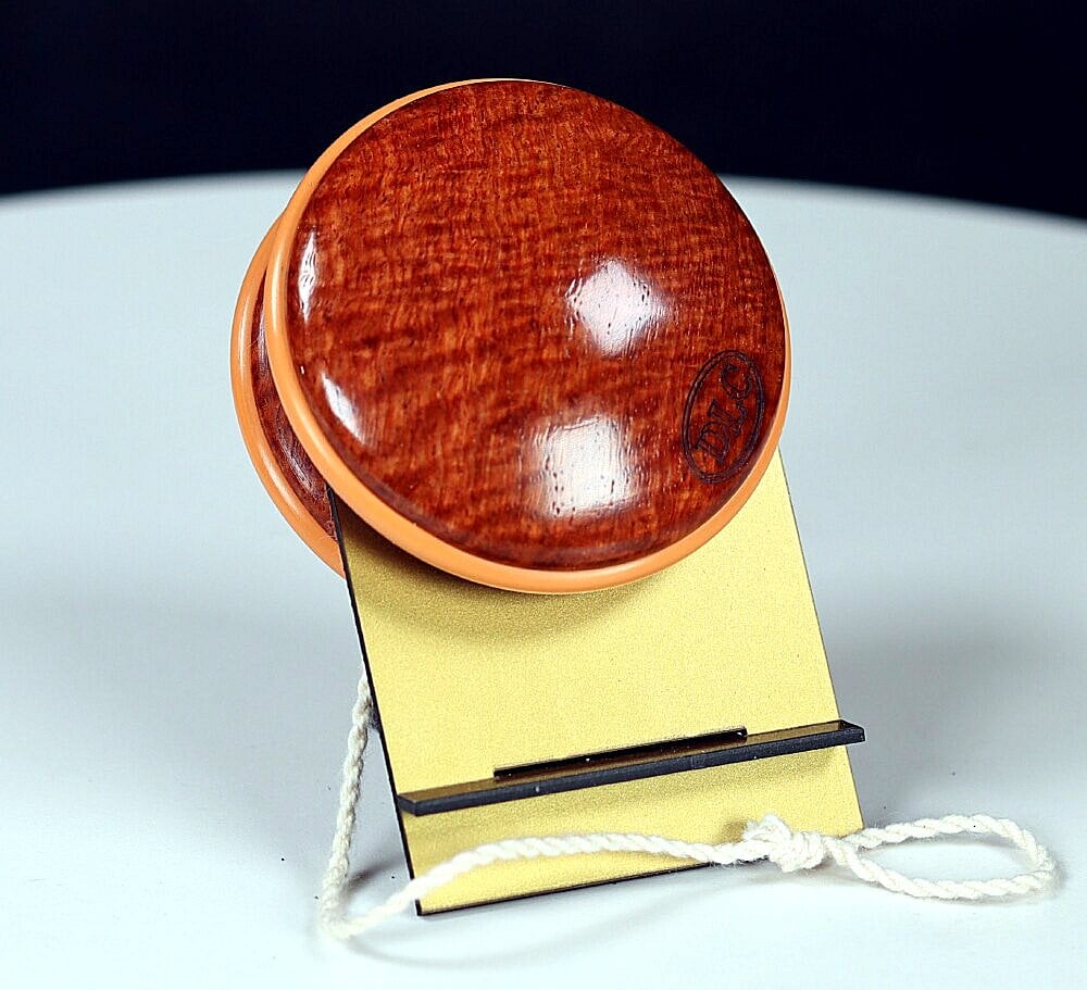 100% handmade and lathe turned here in my Colorado shop, from a solid block of wood, with no glue holding the sides and axle together. Fixed axle, with a "nickel+" width (~2.2 mm) string gap for responsive play, but sleeps easily as well. Perfectly balanced, and a true and very smooth spinner. Measures a small-ish 2.00" x 1.35" and weighs in at 51 grams (with string).
